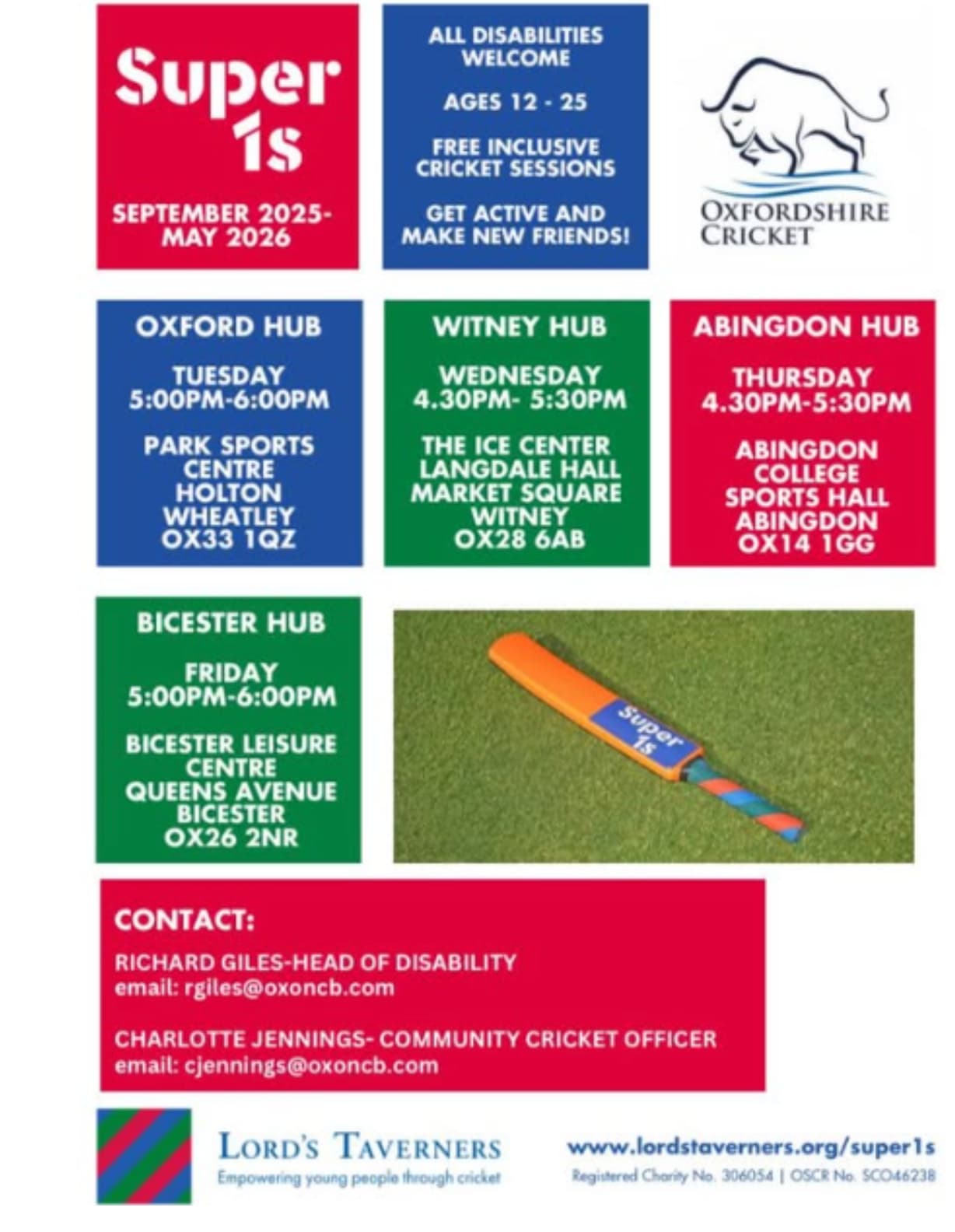 Oxfordshire Cricket will be running Super 1s sessions from September 2025 through May 2026, offering free, inclusive cricket opportunities for young people with disabilities across the county.