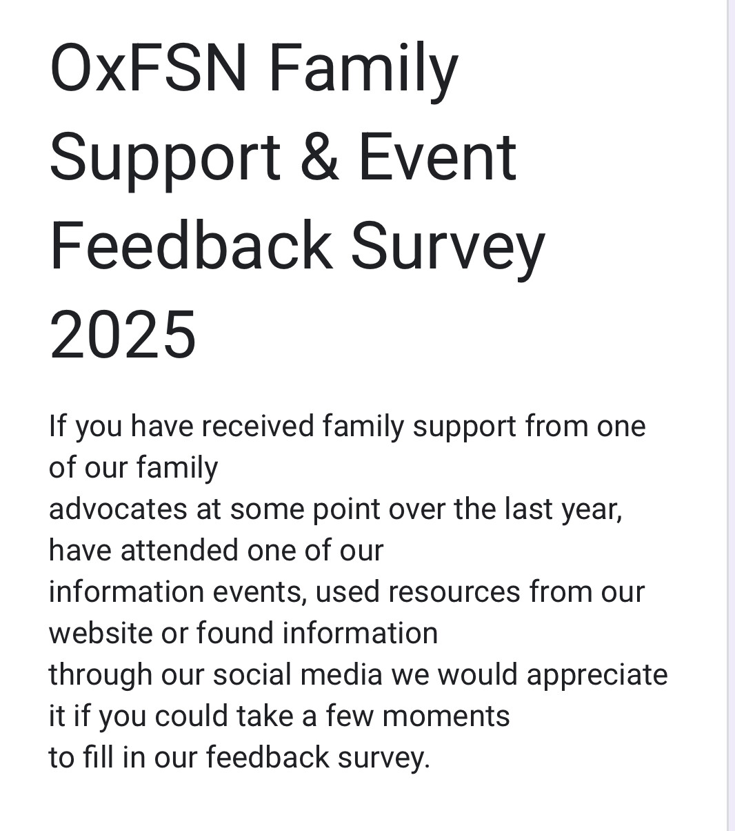 If you have received supported from us from one of our family advocates or by email or attended one of our online or in-person events or used any of our resources, we would really appreciate your feedback.